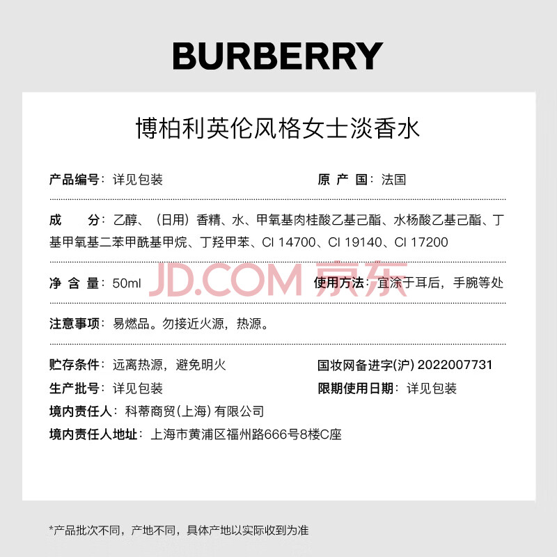 商品相册:博柏利(BURBERRY)英伦风格女士淡香水50ml节日礼物生日礼物送女友送老婆送女生第