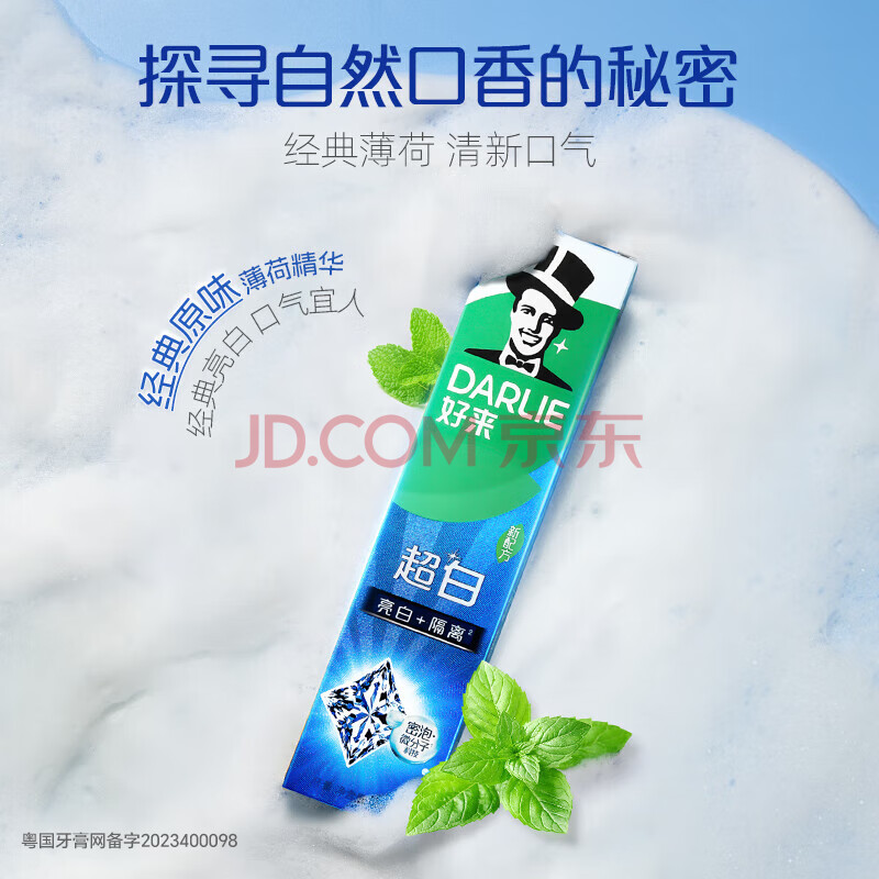 商品相册:好来(DARLIE)(原黑人)超白牙膏牙齿净白清新温和去烟渍去黄去牙渍140g新旧包装第