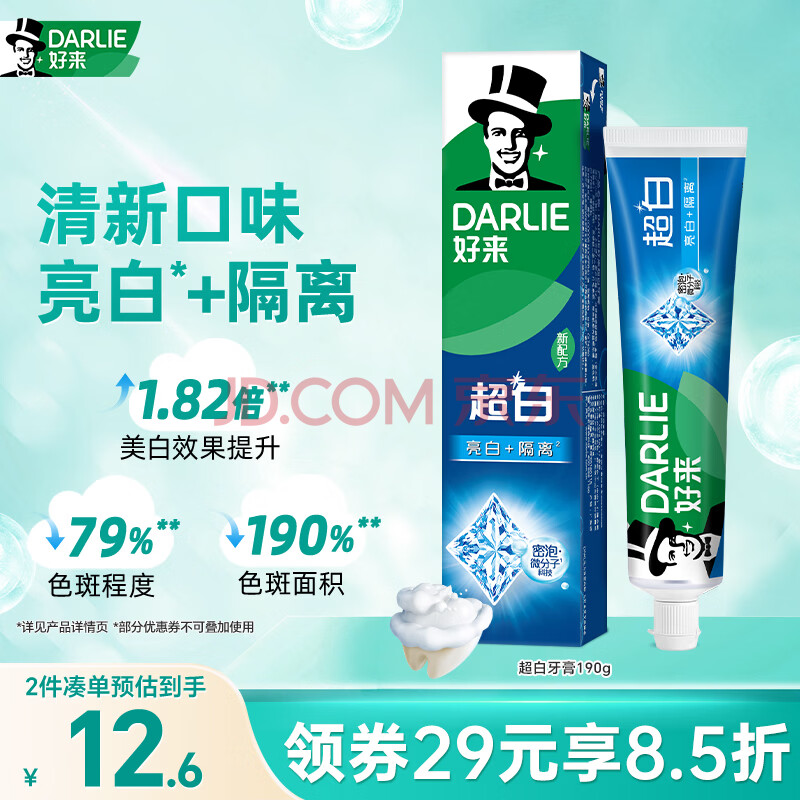 商品相册:好来(DARLIE)【白鹿推荐】超白牙膏微分子亮白去黄隔离牙渍190g新旧随机第