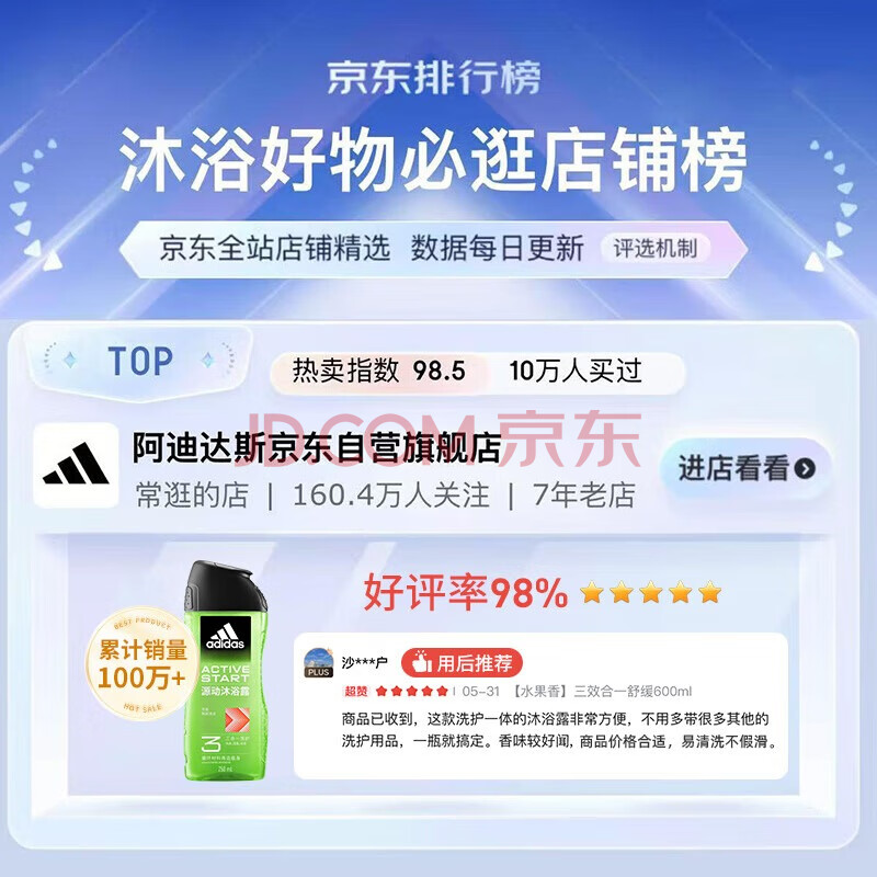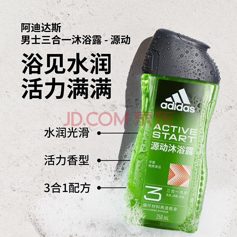 商品相册:阿迪达斯(adidas)沐浴露男士专用 持久留香 源动激活250ml 小瓶旅行装送沐浴球第