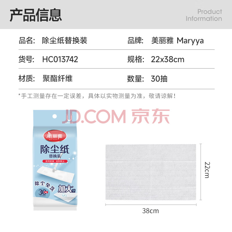商品相册:美丽雅静电除尘纸大号38*22cm*30张平板夹布洗脸巾拖把地板干巾吸尘纸第