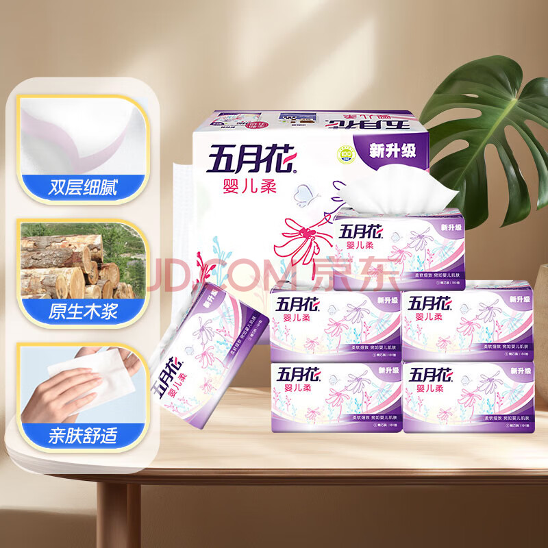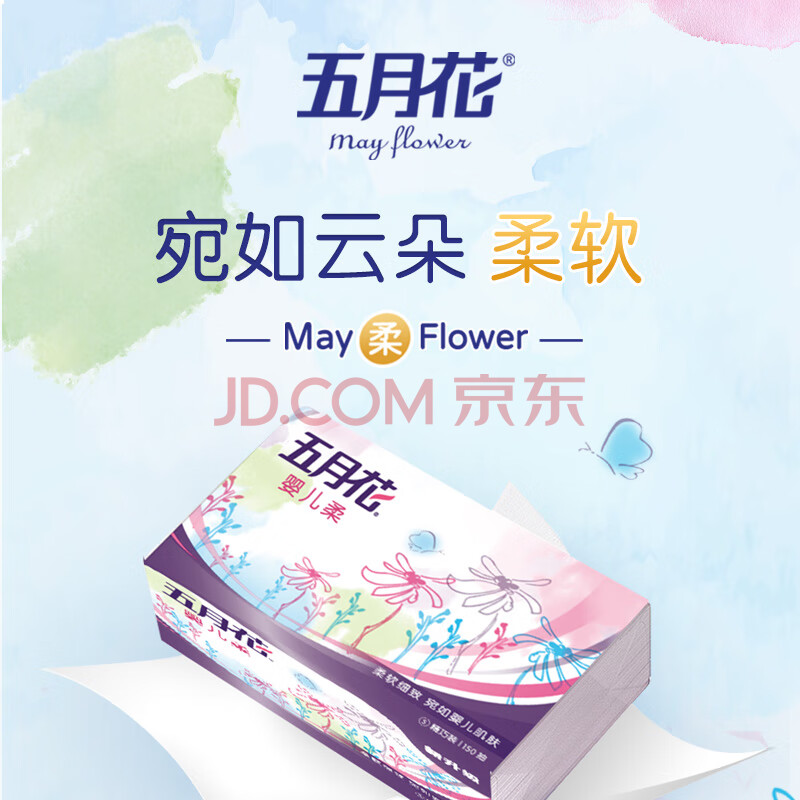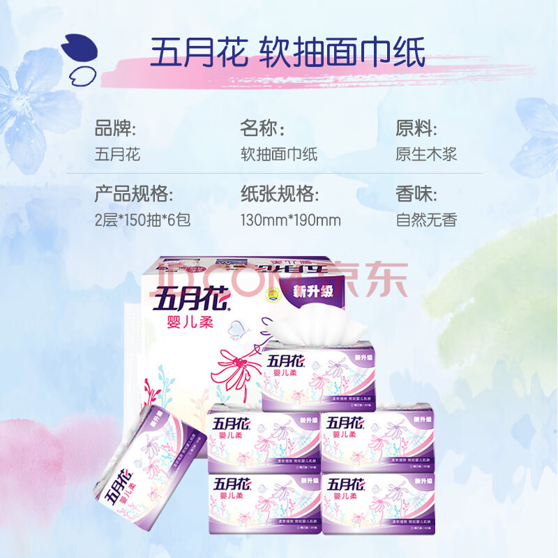 商品相册:五月花(May Flower)抽纸 2层150抽*6包软抽 柔软亲肤面巾纸 小规格 第