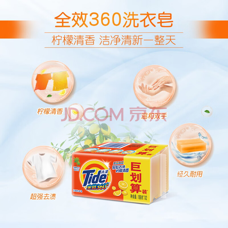 商品相册:汰渍全效洁净洗衣皂柠檬188g*2块 温和去渍不伤手 肥皂透明皂第