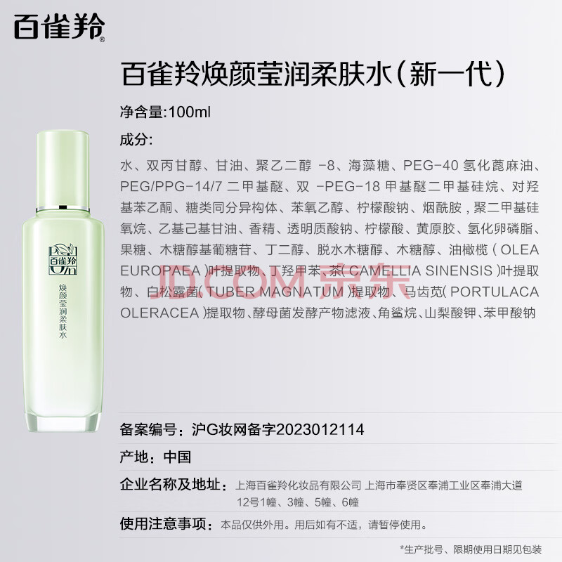 商品相册:百雀羚爽肤水保湿补水护肤品 焕颜莹润柔肤水100ml滋润生日礼物第