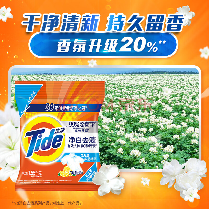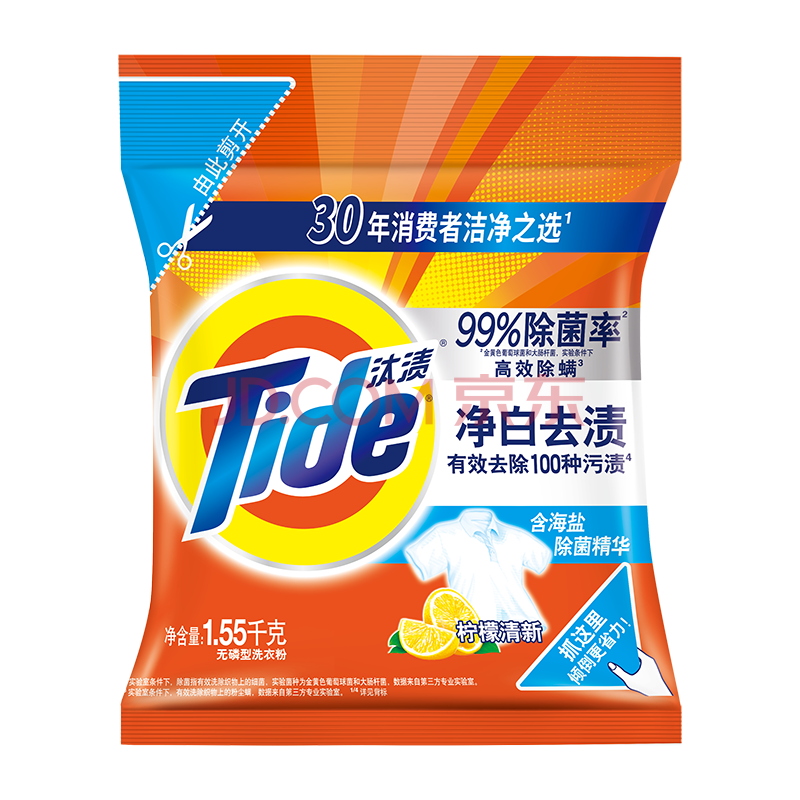 商品相册:汰渍净白去渍洗衣粉柠檬清新3.1斤装 强效去渍 持久留香 除菌除螨第