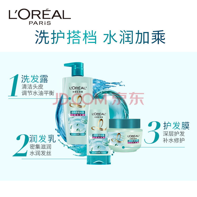 商品相册:欧莱雅透明质酸水润润发乳400ml 无硅油护发素润发(新老包装随机发货)第