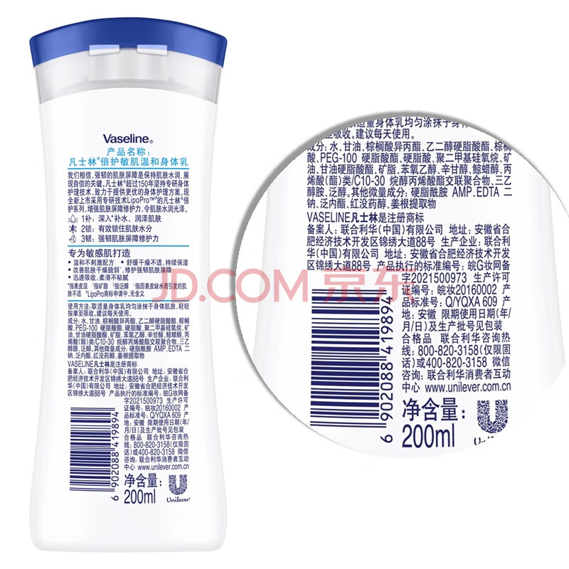 商品相册:凡士林身体乳200ml温和修护 保湿滋润春夏润肤护手第
