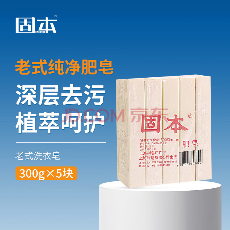 商品相册:固本洗衣皂300g*5块 老式肥皂内衣皂尿布皂香胰子洗手洗衣服第