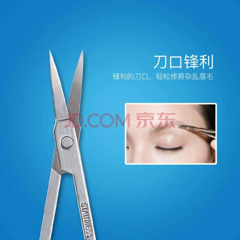 商品相册:优家(UPLUS)不锈钢修眉神器小剪刀化妆剪弯头眉毛剪美容剪眉毛修剪器第