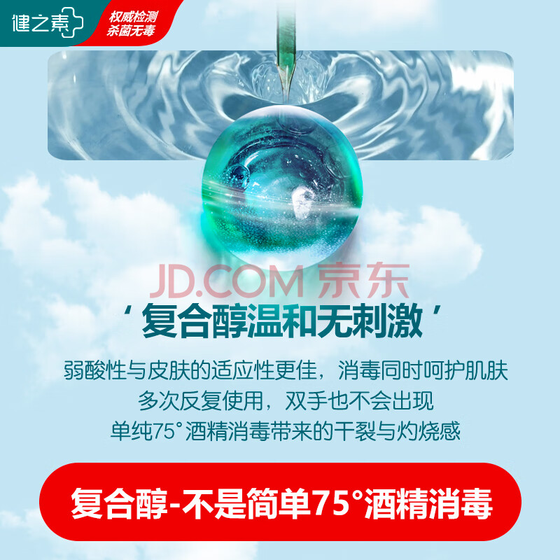 商品相册:健之素免洗洗手液家用速干酒精免洗消毒液外出家用成人儿童宝宝300ml第