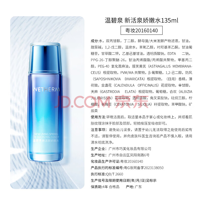 商品相册:温碧泉爽肤水新活泉娇嫩水135ml 护肤化妆品男女适用 补水保湿湿敷第
