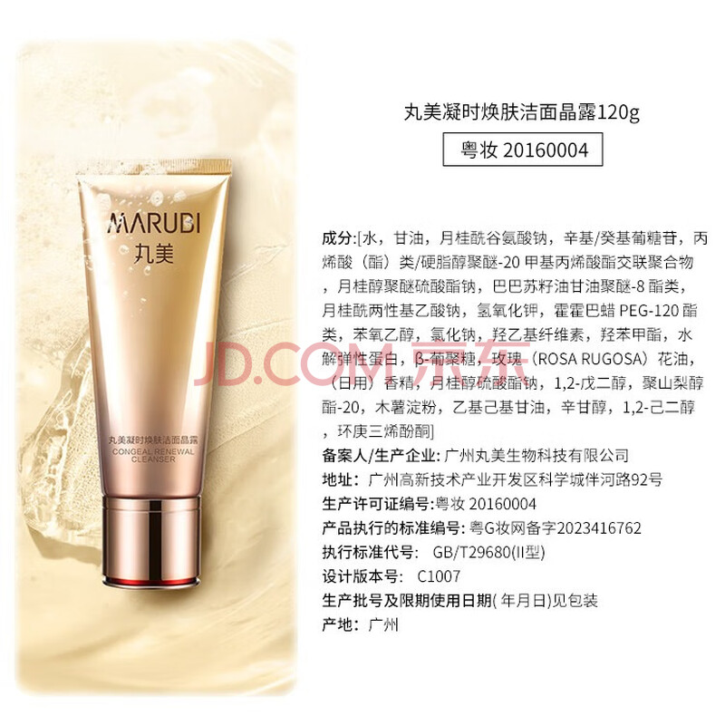 商品相册:丸美氨基酸洗面奶 凝时焕肤洁面晶露120g 男女低泡温和清洁第