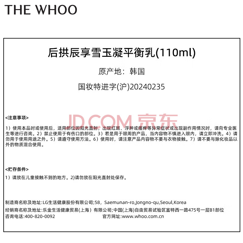 商品相册:后Whoo拱辰享雪玉凝平衡乳110ml焕白补水护肤品乳液女士生日礼物第