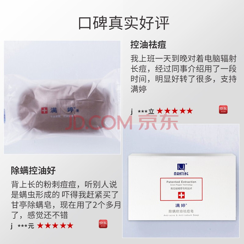 商品相册:满婷(MANTING)除螨控油祛痘皂108g*3块(除螨皂螨婷香皂后背痘洁面皂去螨虫肥皂)第