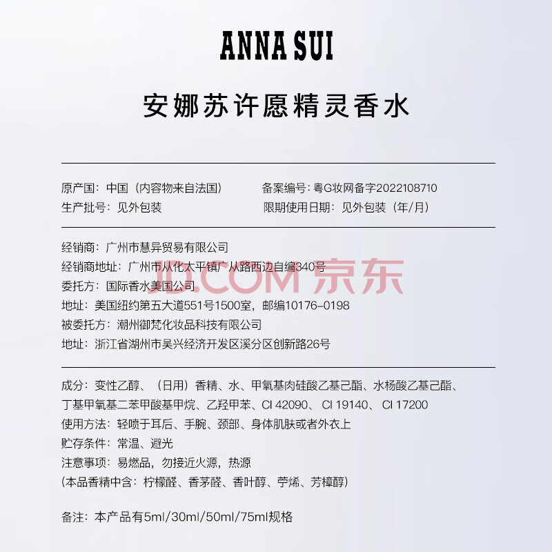 商品相册:安娜苏(Anna sui)【所愿皆成】许愿精灵淡香水女士75ml礼盒送女生生日礼物第