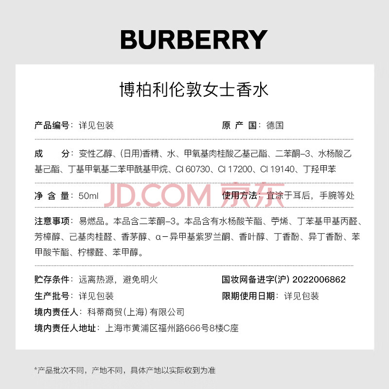 商品相册:博柏利(BURBERRY)伦敦女士香水 50ml 节日礼物送女友老婆生日礼物送女生第