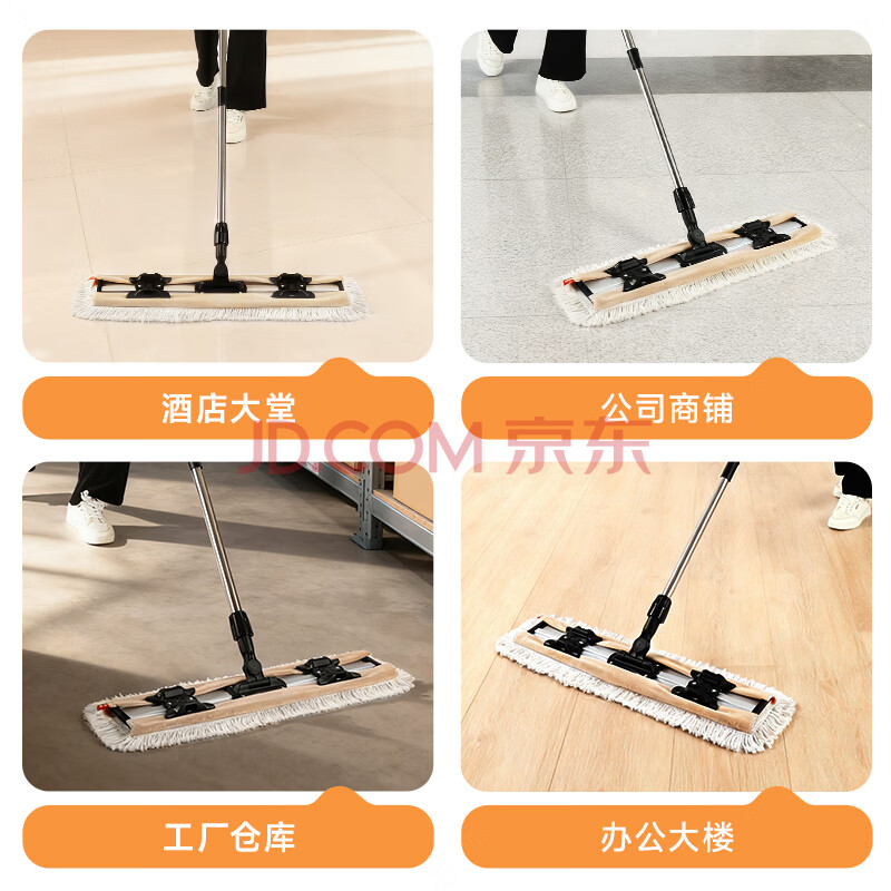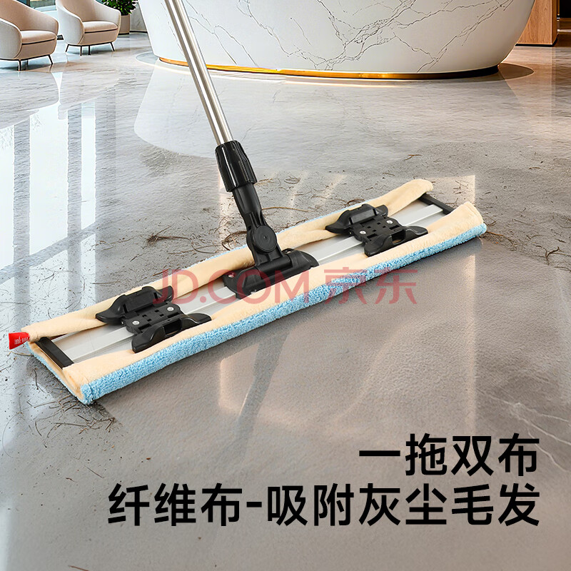 商品相册:美丽雅夹布式平板拖把60cm伸缩杆130cm2拖布保洁家政酒店超大尘推一拖净第