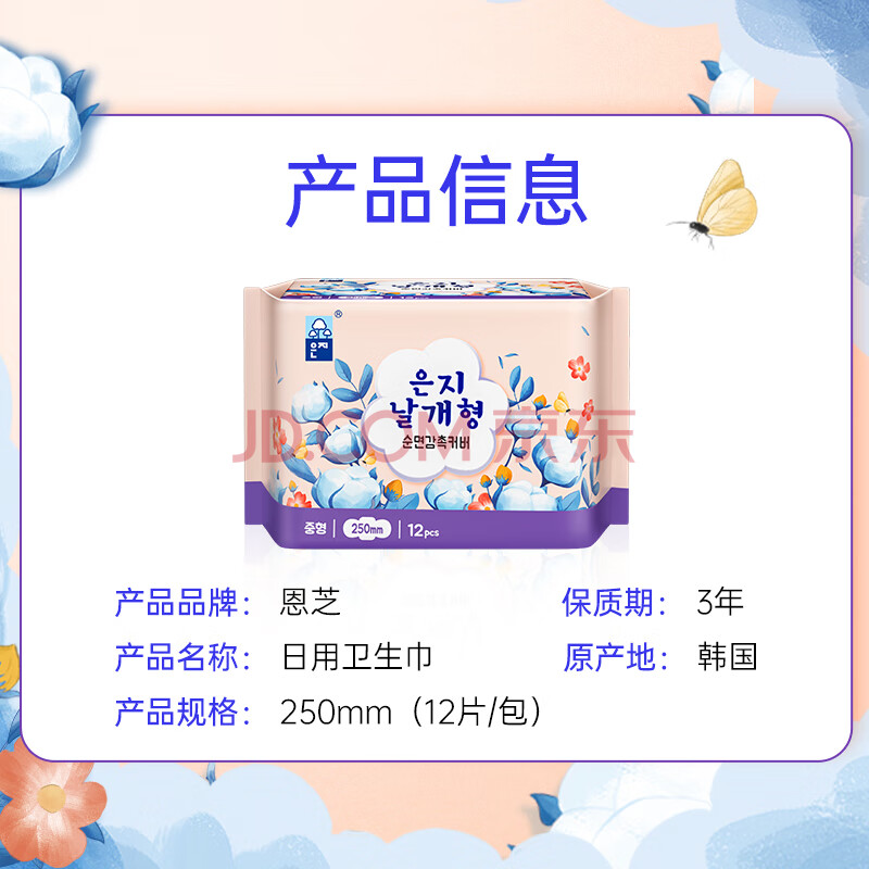 商品相册:恩芝(Eunjee)韩国进口日用卫生巾250mm12片 超薄护翼型层层透气瞬吸清爽姨妈巾第