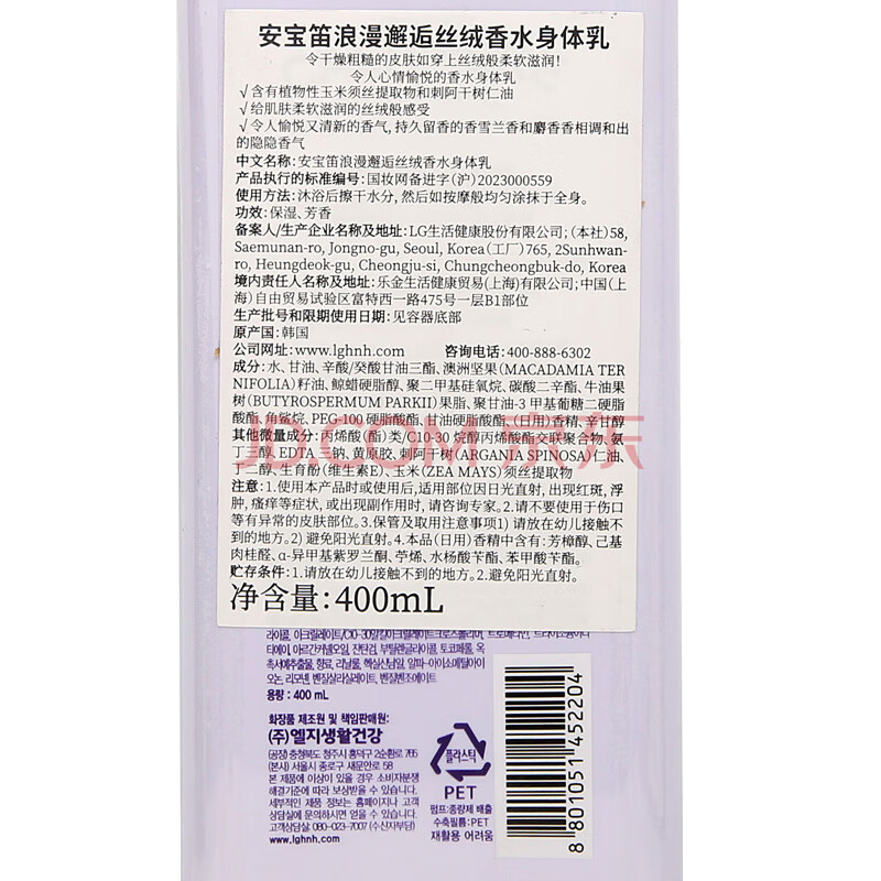 商品相册:安宝笛LG身体乳男女士持久留香润肤乳秋冬季皮肤干燥保湿浪漫邂逅400ml第