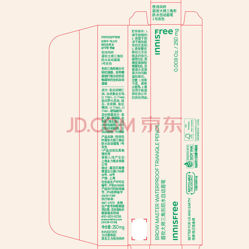 商品相册:悦诗风吟(innisfree)眉妆大师自动眉笔三角形1灰色0.25g防水送女友礼物第