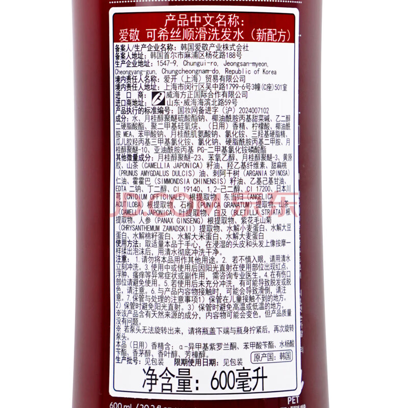 商品相册:爱敬顺滑亮泽洗发水600ml强韧护发男女士进口洗发膏露滋养柔顺留香第