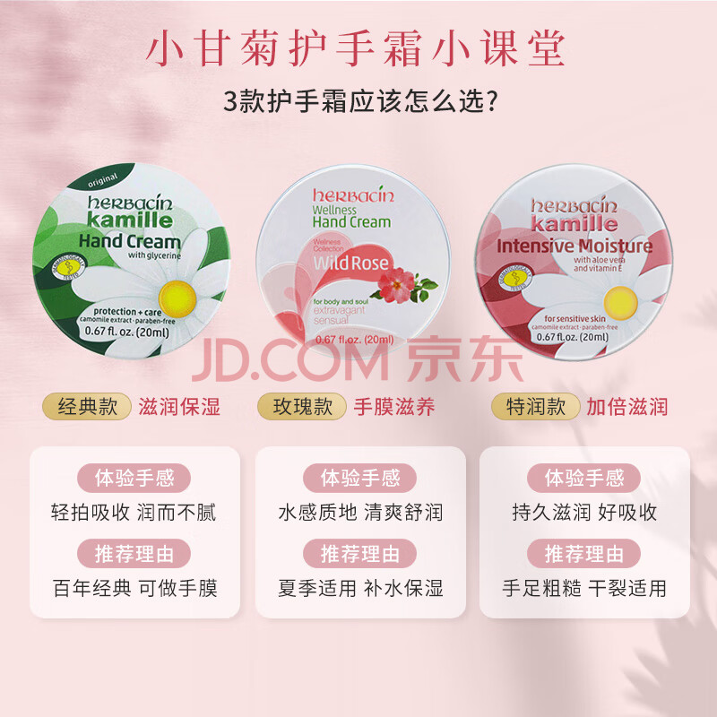 商品相册:Herbacin好本清德国小甘菊特润护手霜20ml圆罐 滋润保湿礼物 伴手礼第