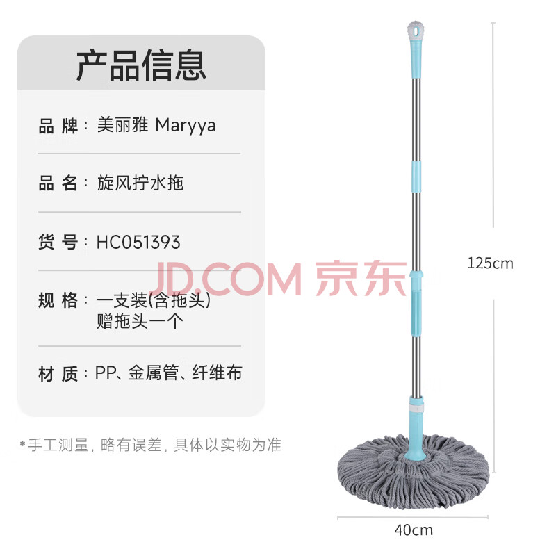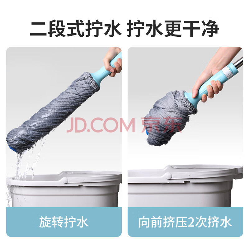商品相册:美丽雅自拧水拖把吸水墩布旋转挤水家用懒人免手洗老式地拖共2拖布第