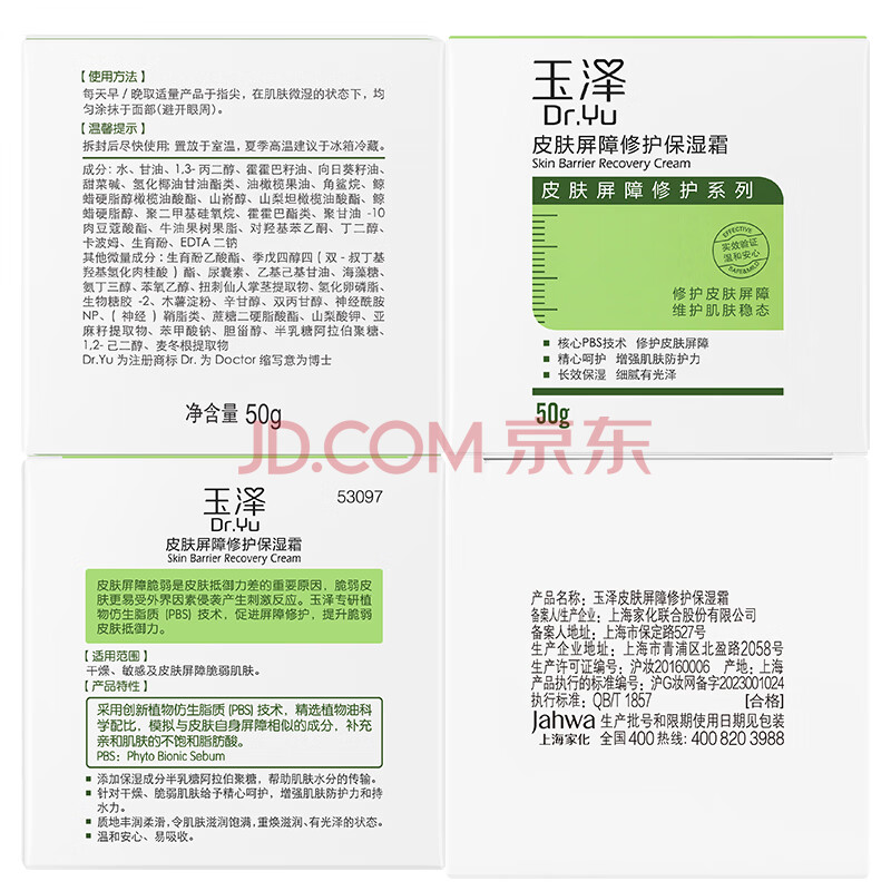 商品相册:玉泽(Dr.Yu)皮肤屏障修护保湿霜50g(舒缓面霜补水保湿 敏感肌)第