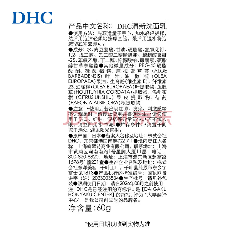商品相册:DHC清新洗面乳60g 面部清洁 粉刺 油痘肌适用温和清爽洁面乳男女第
