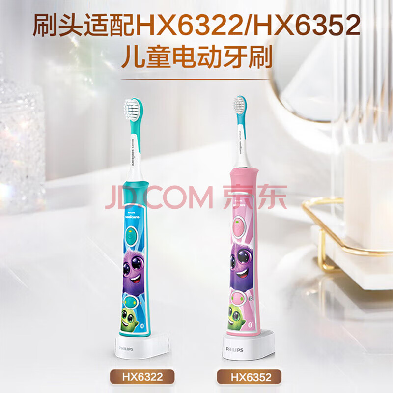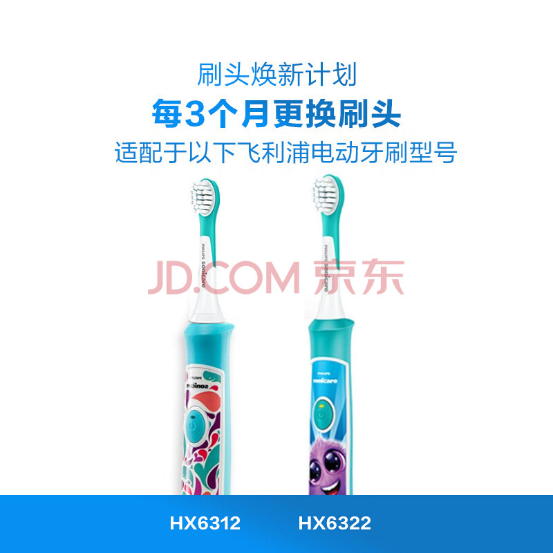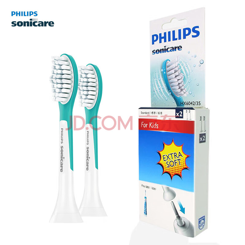 商品相册:飞利浦电动牙刷头 儿童标准型 2支装 HX6042/63 官方原装适配小飞刷HX5232 HX6322 HX6352型号刷柄第