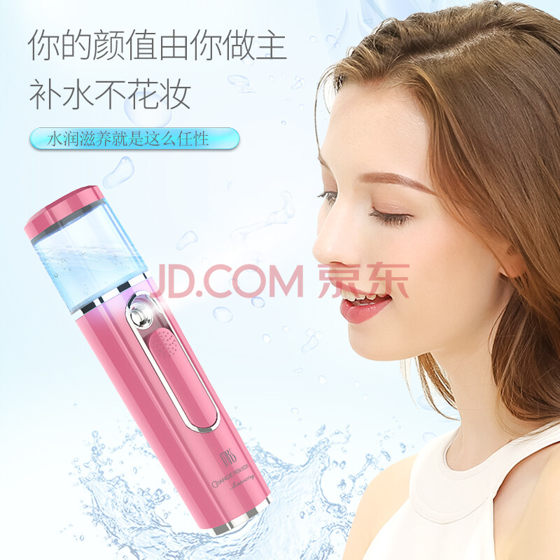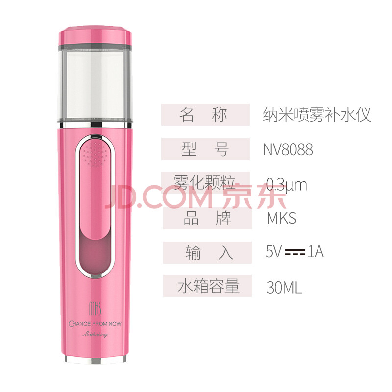 商品相册:mks美克斯纳米喷雾器补水仪 30ml大水箱便携手持面部加湿器生日礼物送女生 NV8088妃红粉第