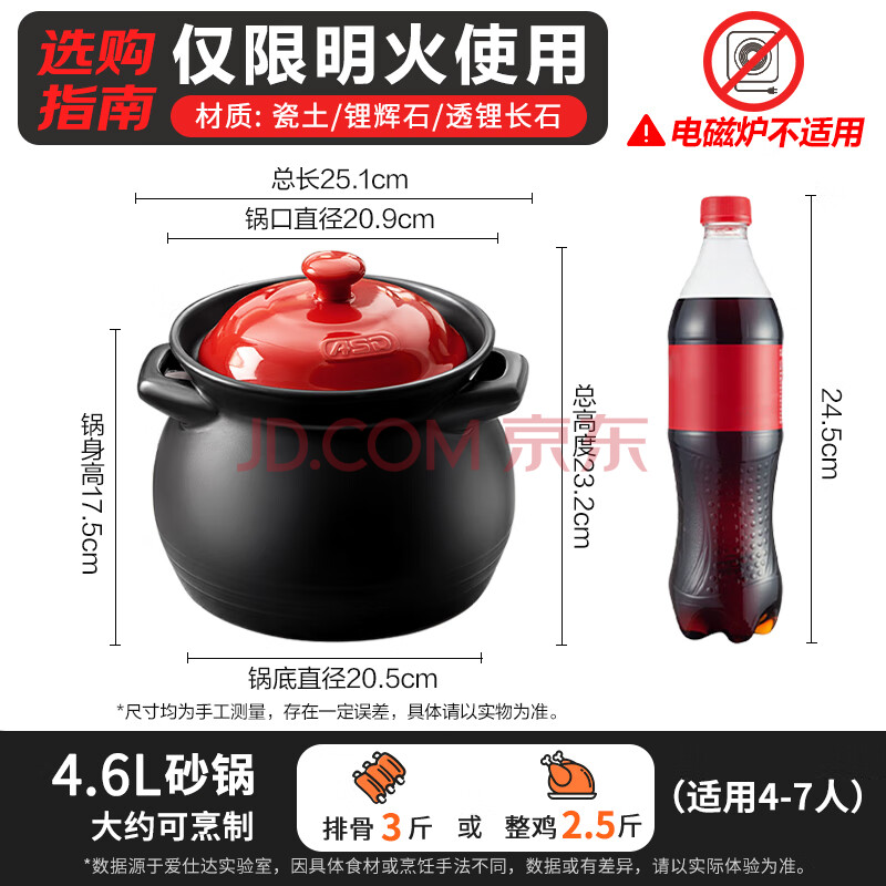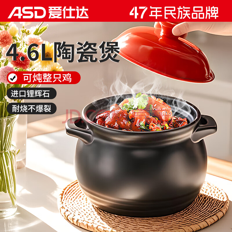 商品相册:爱仕达(ASD)砂锅煲汤锅家用耐高温干烧炖锅4.6L陶瓷煲沙锅中药煎药锅第1张/共8