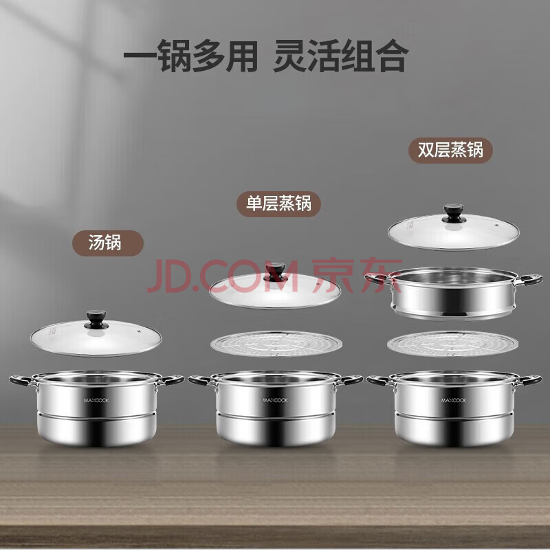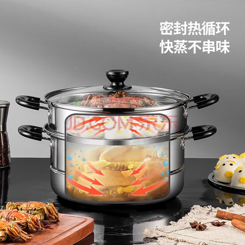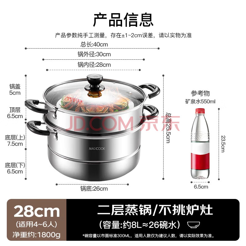 商品相册:美厨(MAXCOOK)二层蒸锅 28cm不锈钢蒸锅可蒸可煮 电磁炉燃气炉煤气灶通用第