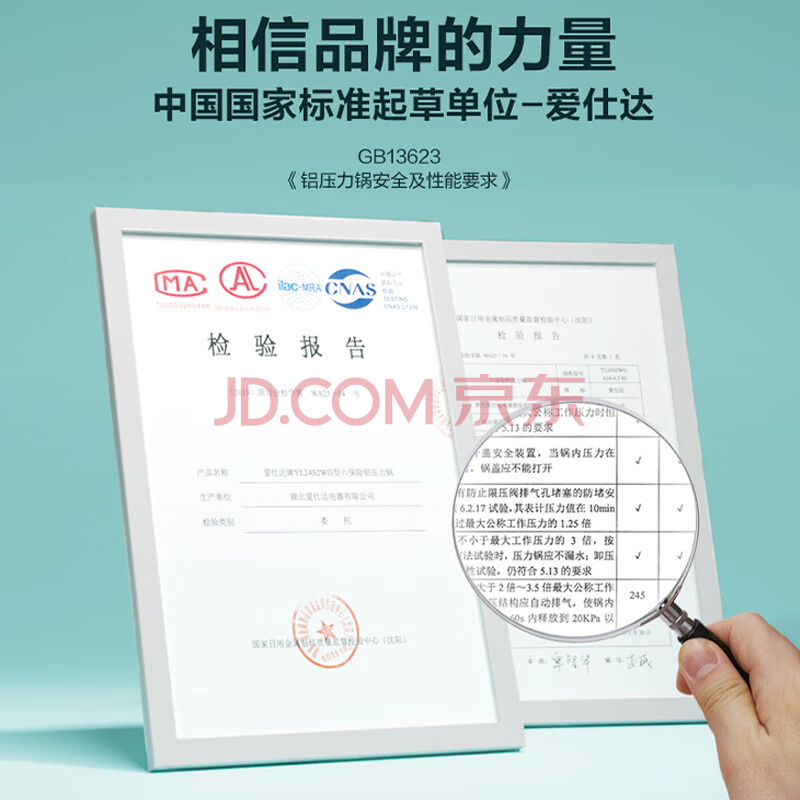 商品相册:爱仕达ASD 高压锅燃气明火防爆六保险5.3L铝合金22CM家用压力锅YL22S2WG第