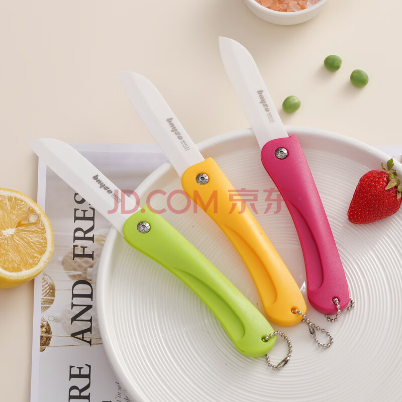 商品相册:拜格(bayco)水果刀3寸折叠削皮刀便携陶瓷刮皮刀刨皮刀削皮器绿色BD8002第