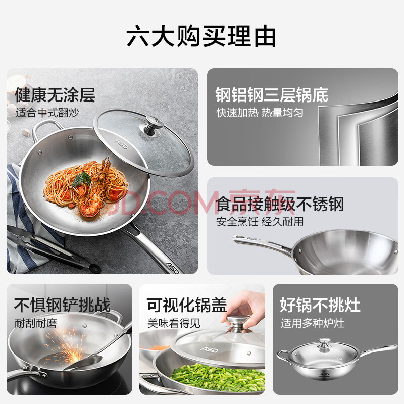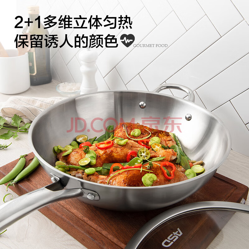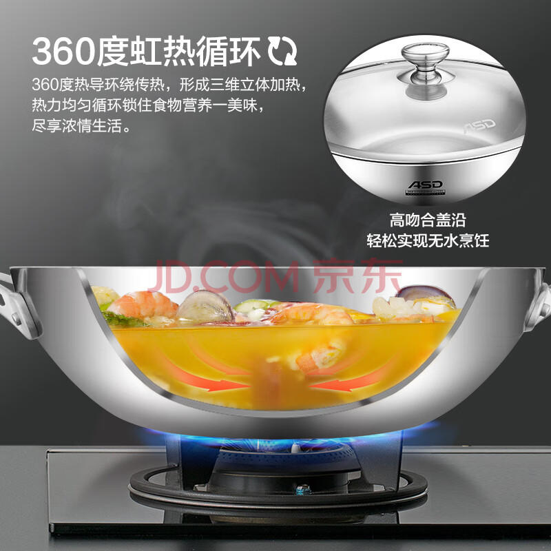商品相册:爱仕达(ASD)炒锅炒菜锅304不锈钢无涂层家用炒锅32cm燃气电磁炉通用TV1332第1张/共7
