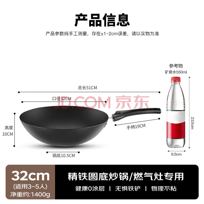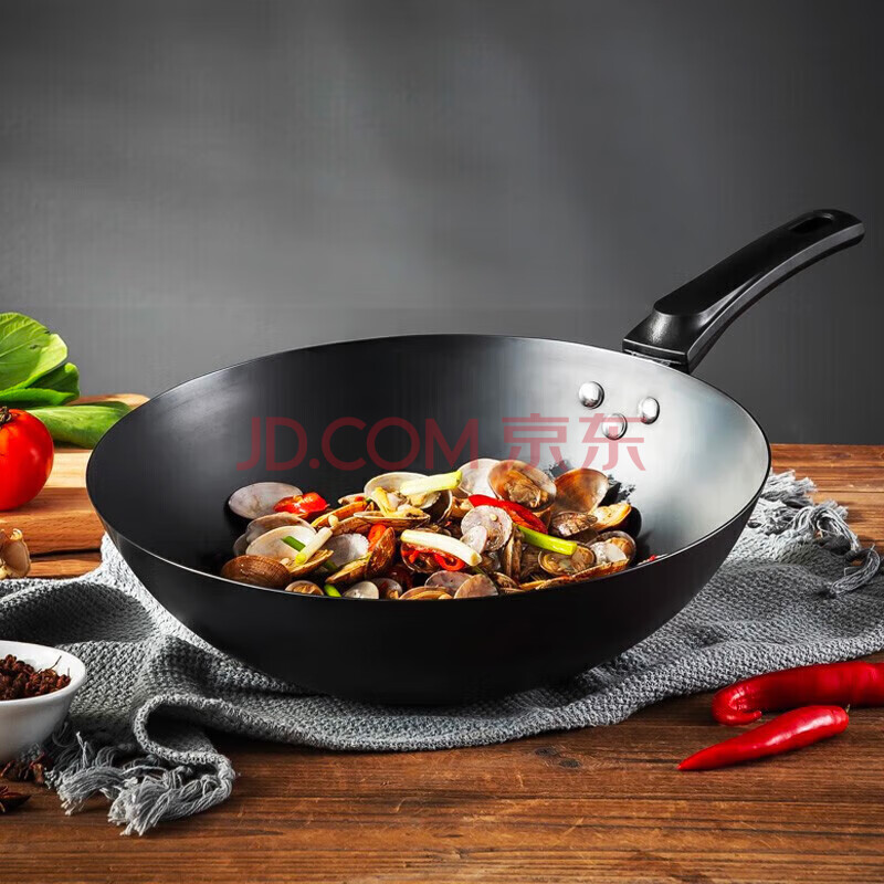 商品相册:美厨(MAXCOOK)铁锅炒锅圆底 无涂层老式炒菜精铁锅32cm煤气燃气专用MCC-142随机第