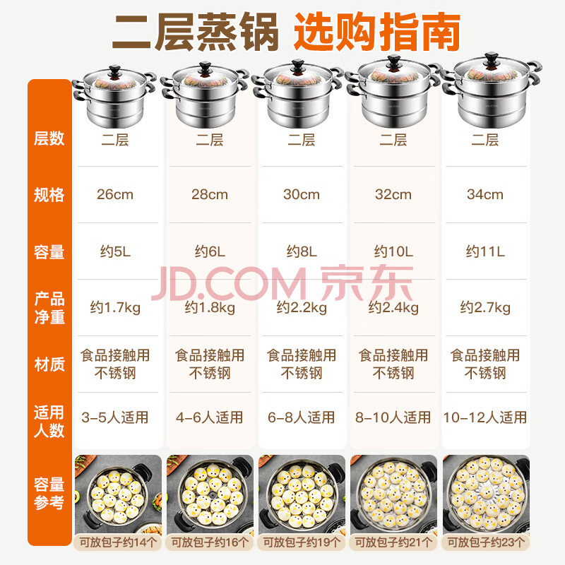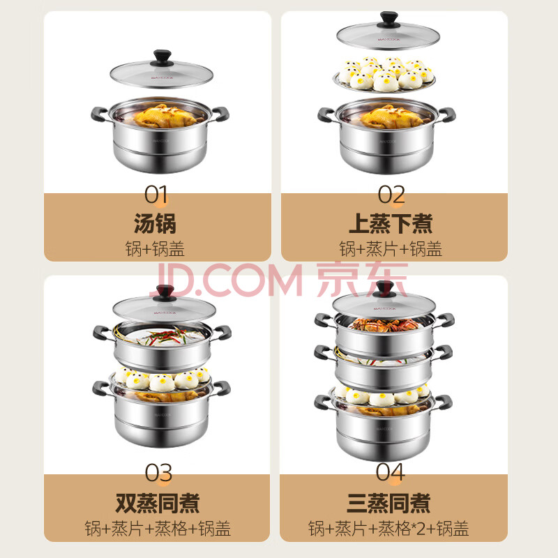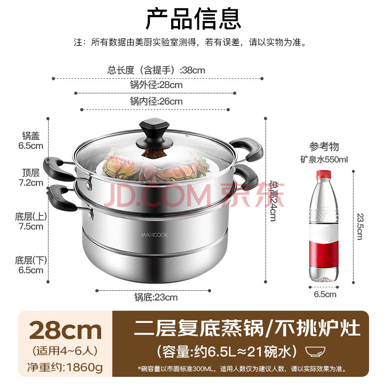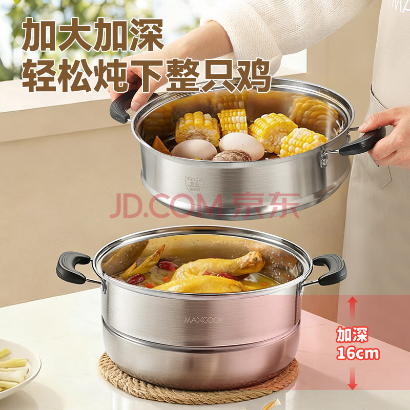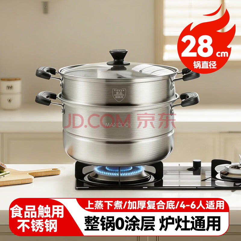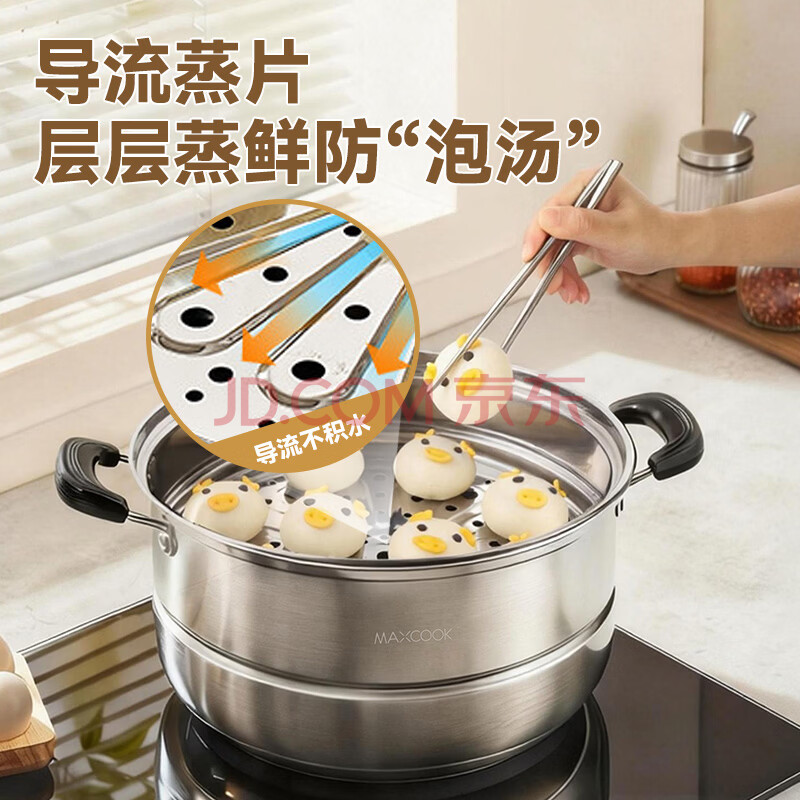 商品相册:美厨(MAXCOOK)二层蒸锅 28cm不锈钢蒸锅复底可蒸可煮 燃气灶电磁炉通用第