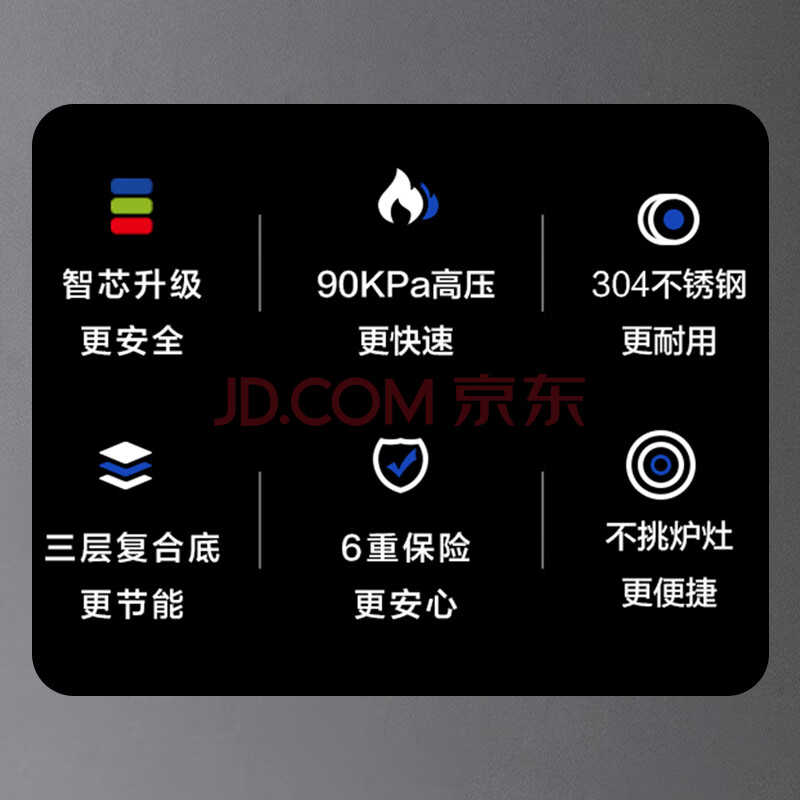 商品相册:爱仕达 ASD 高压锅304不锈钢T型6.0L智芯压力锅燃气电磁炉通用YS22T1WG第