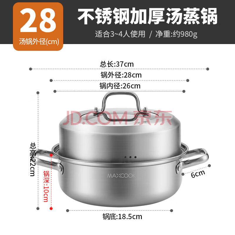 商品相册:美厨(MAXCOOK)蒸锅 不锈钢28CM单层蒸锅火锅汤蒸锅 燃气电磁炉通用 MCDS-2561第