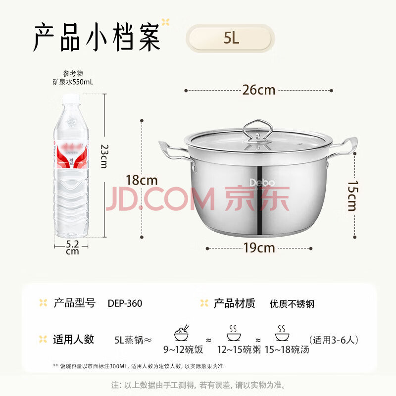 商品相册:Debo德铂贝勒堡蒸锅不锈钢汤锅电磁炉燃气通用锅26cm第1张/共9