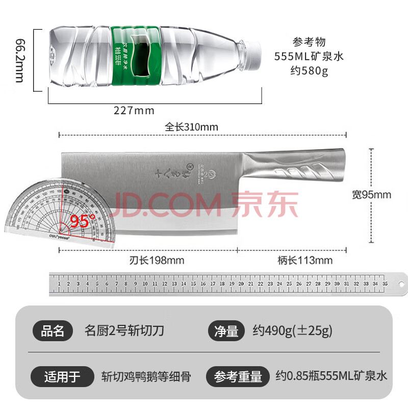 商品相册:十八子作专业中式厨刀 复合钢菜刀厨师刀切片刀 名厨2号小号斩切刀TP01-2第