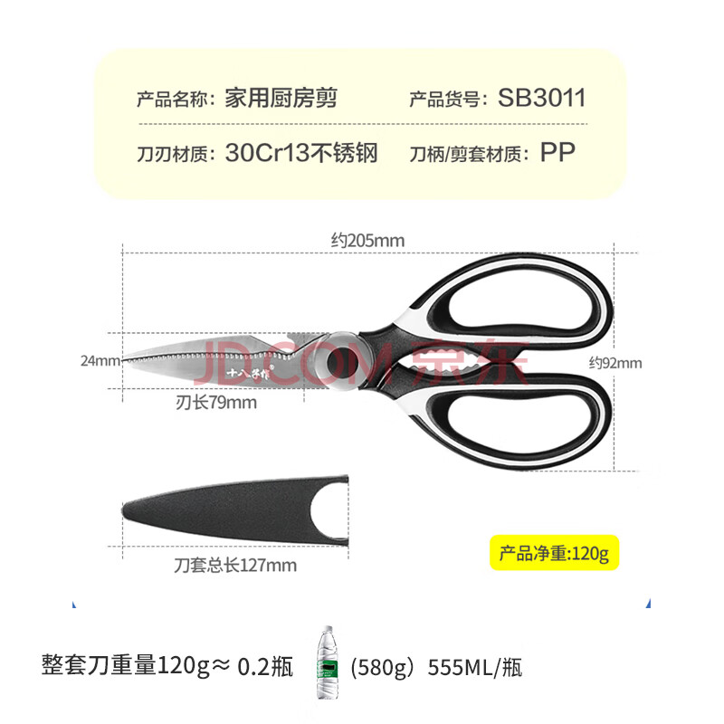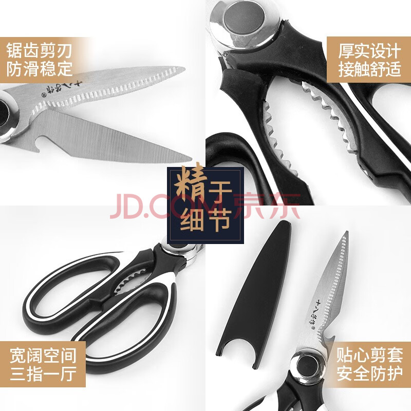 商品相册:十八子作 家用多功能开瓶盖夹核桃厨房剪刀SB3011(含防护套)第