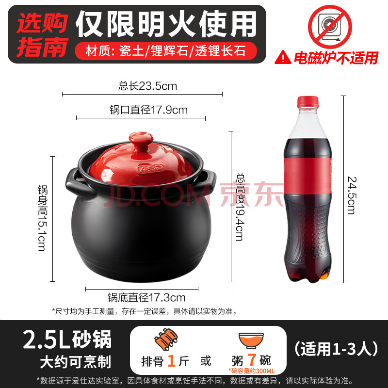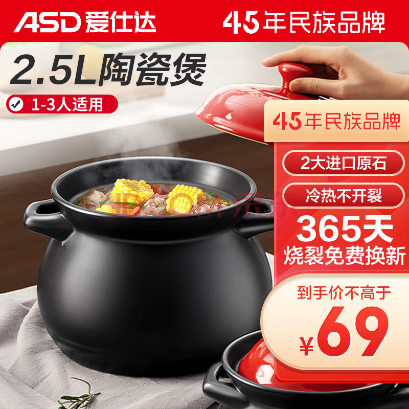 商品相册:爱仕达(ASD)砂锅煲汤家用汤锅炖锅燃气灶家用2.5L沙锅陶瓷煲中药煎药第