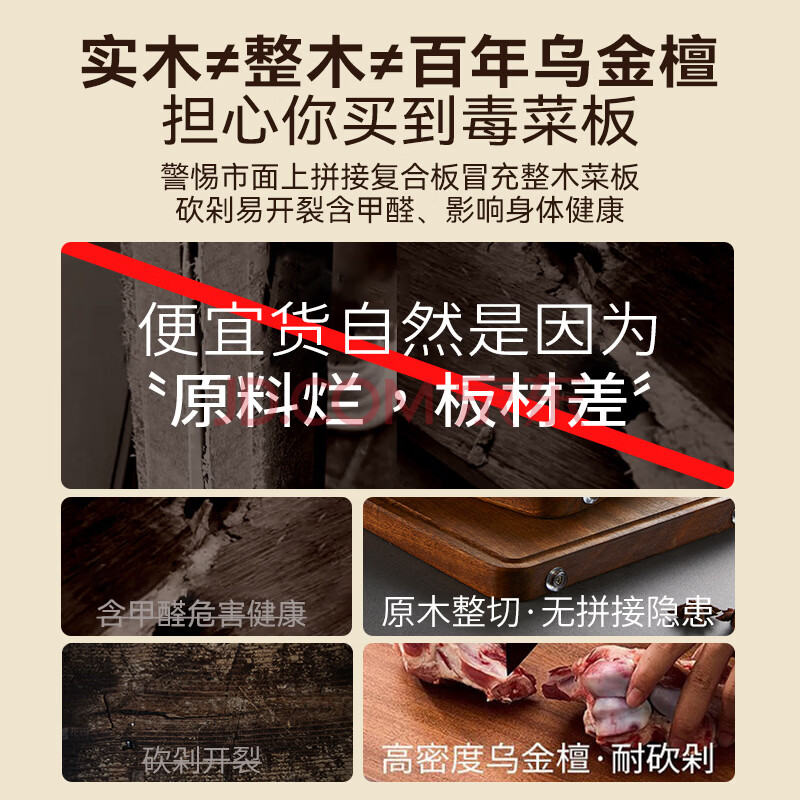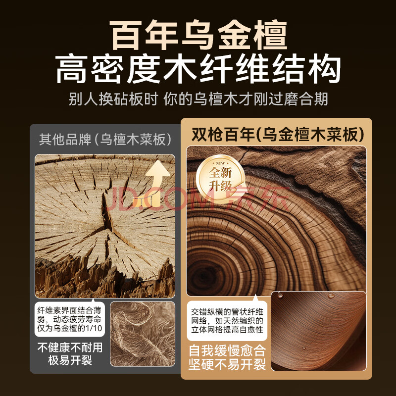 商品相册:双枪乌金檀木整木菜板 百年龄砧板家用切菜案板抗菌实木菜板33*22*2.5第