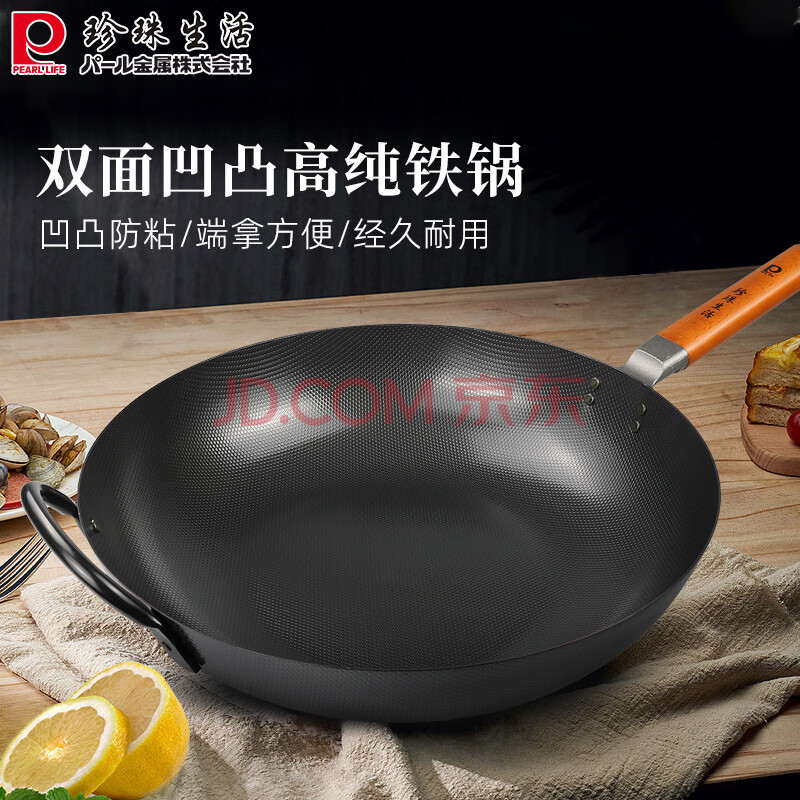 商品相册:珍珠生活日本原装进口铁锅炒锅 家用33cm健康无涂层纯铁第