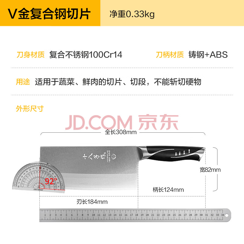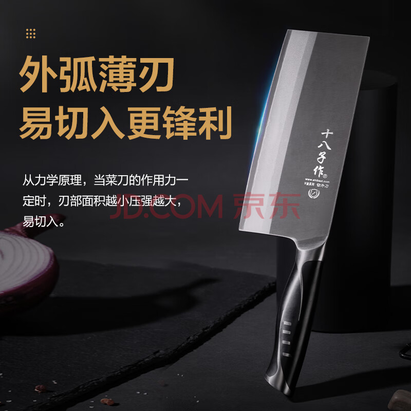 商品相册:十八子作 V金复合钢家用刀具菜刀切片刀S1016-B【精美礼盒+专属刀架】第1张/共8