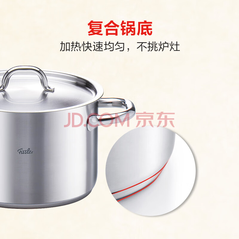 商品相册:菲仕乐 凡睦系列24厘米钢盖双柄汤锅(带屉)不锈钢双层蒸锅第