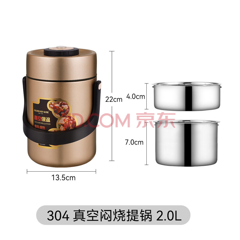 商品相册:金钥匙(GOLDEN KEY)304保温提锅2L焖烧防溢真空不锈钢饭盒保温桶香槟金GK-MF2000T-G第