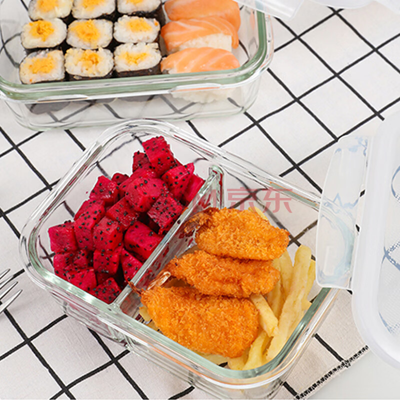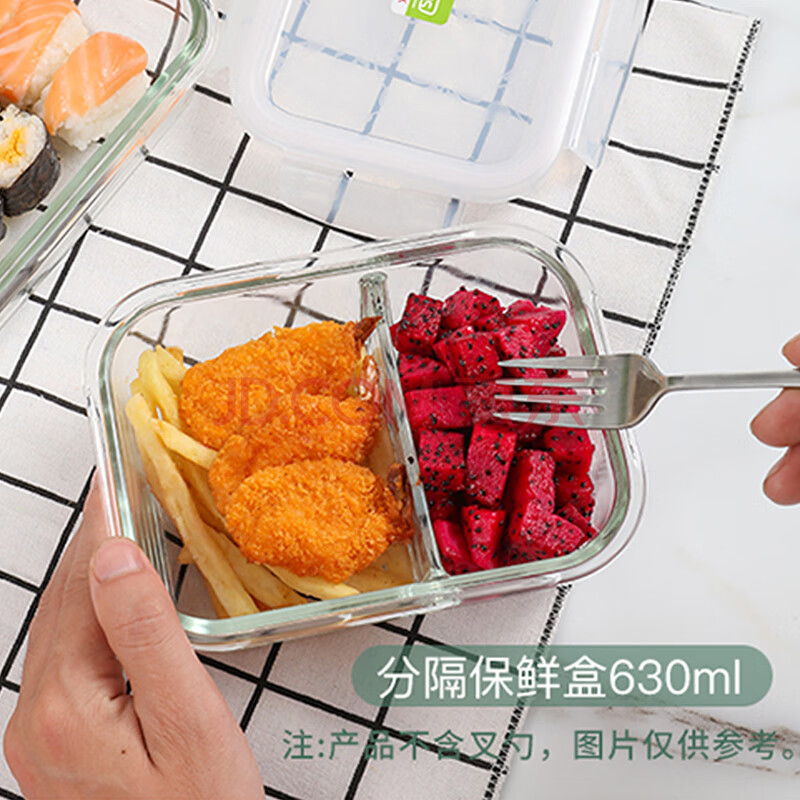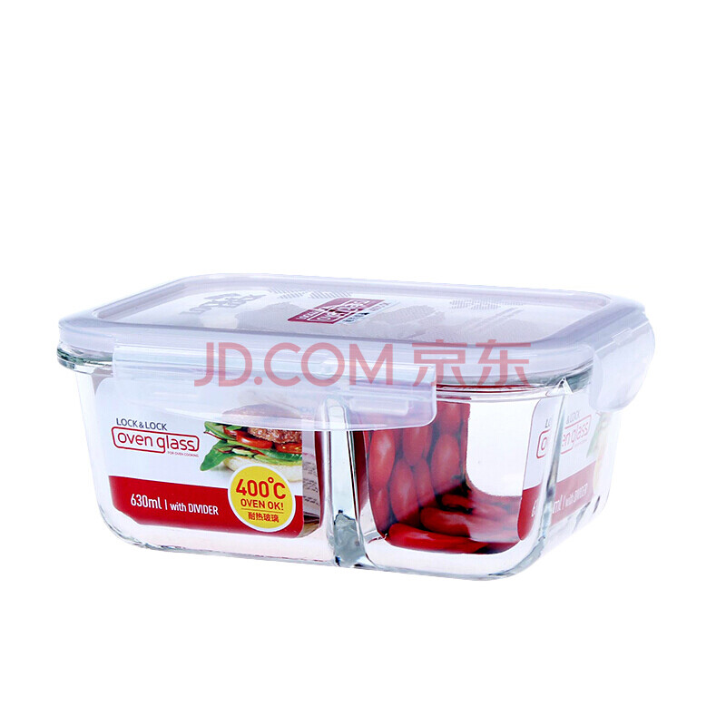 商品相册:乐扣乐扣耐热玻璃保鲜盒微波炉饭盒密封便当盒餐盒冰箱收纳盒630ml二分隔第